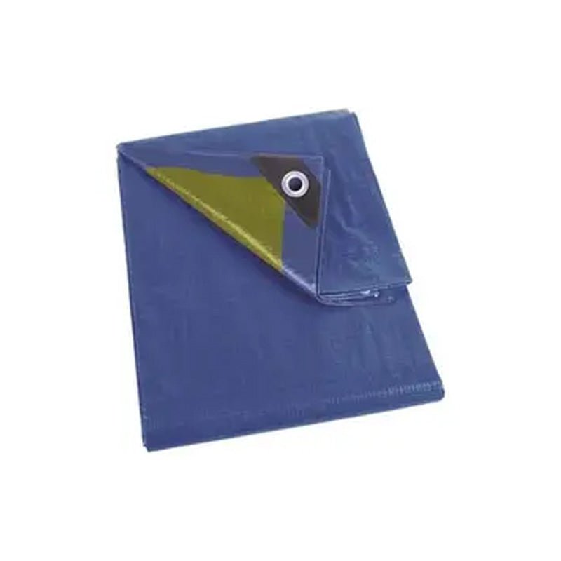 Dimensions : 3 x 6 m. Couleur : bleu/kaki. Poids : 110 g/m². Tissage : 10 x 10. Imperméable. Avec œillets et coins renforcés. Usage universel.