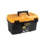 Dimensions : 43,2 x 25 x 23,8 cm. Capacité : 25,7 L. Matière : plastique durable. Couleur : noir avec détails orange. Équipée d’un plateau porte-outils amovible pour un rangement organisé. Poignée ergonomique pour un transport facile. Fermetures en plastique sécurisées pour protéger le contenu. Coffre spacieux et résistant pour accueillir tous types d’outils.