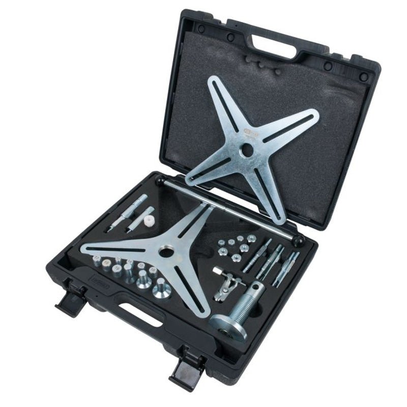 Le coffret convient aussi pour les véhicules sans roulement de centrage et s’utilise aussi bien sur véhicules légers que sur petits utilitaires. Robuste et complet, il est un indispensable en atelier mécanique.