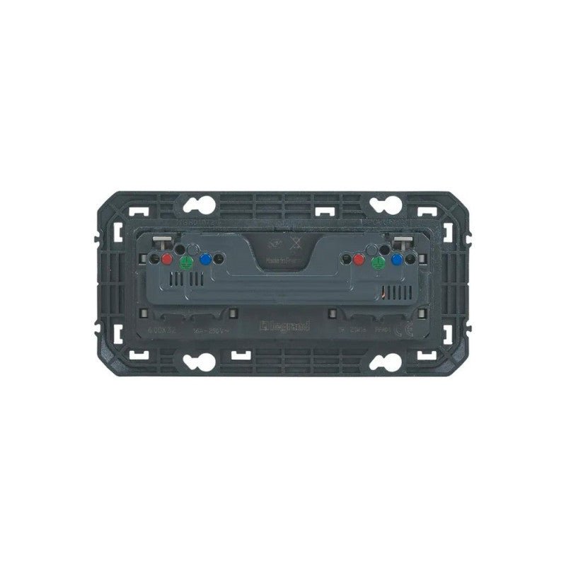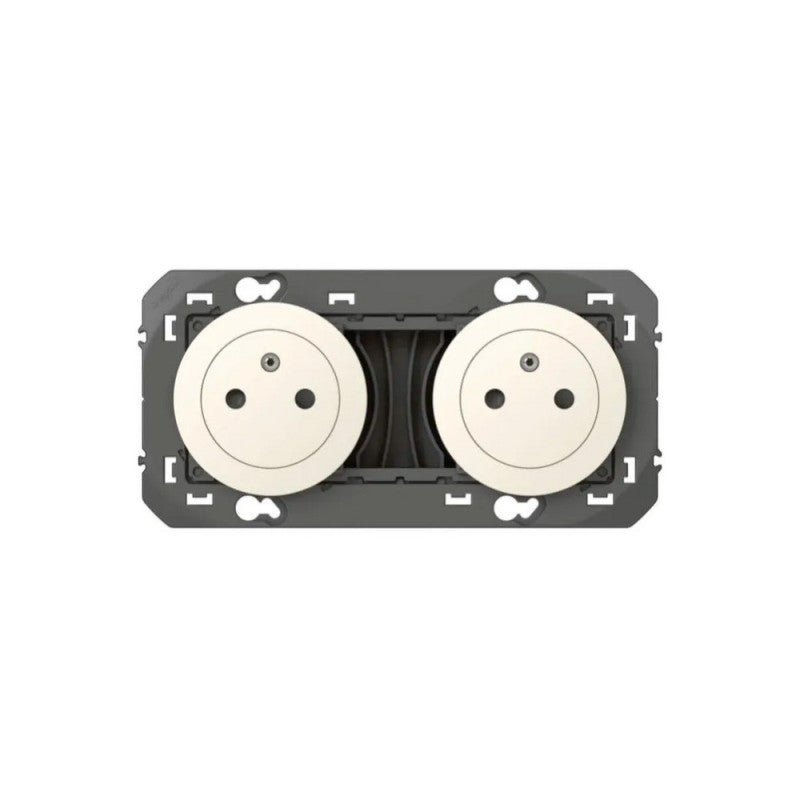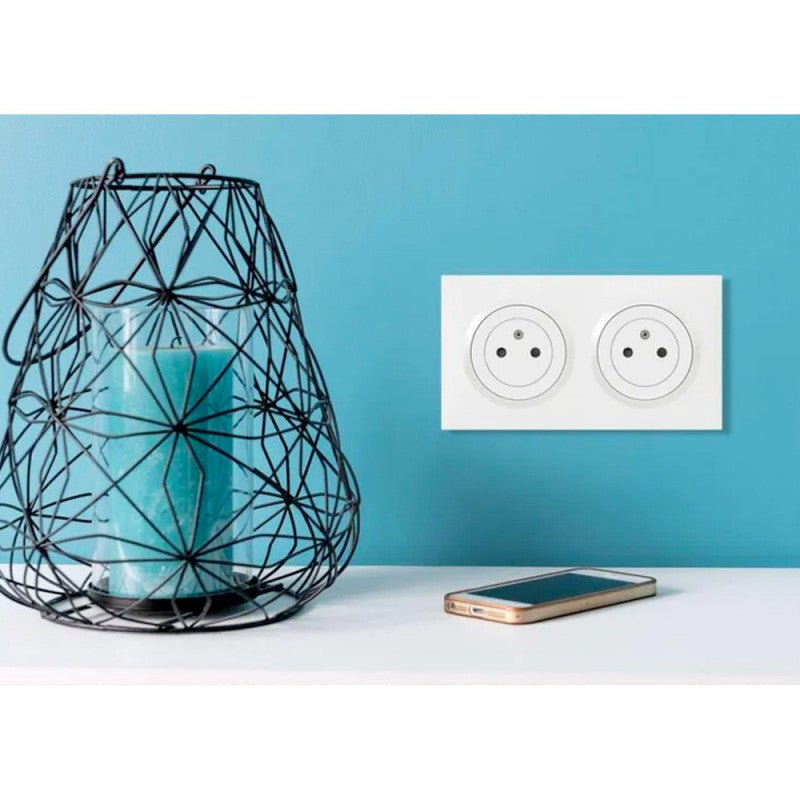 Cette double prise de courant Dooxie, de la marque Legrand, est utilisée pour mettre sous tension les appareils électrodomestiques.