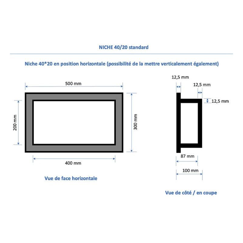 Vous pouvez positionner ces niches de manière verticale ou horizontale : longueur et largeur sont interchangeables