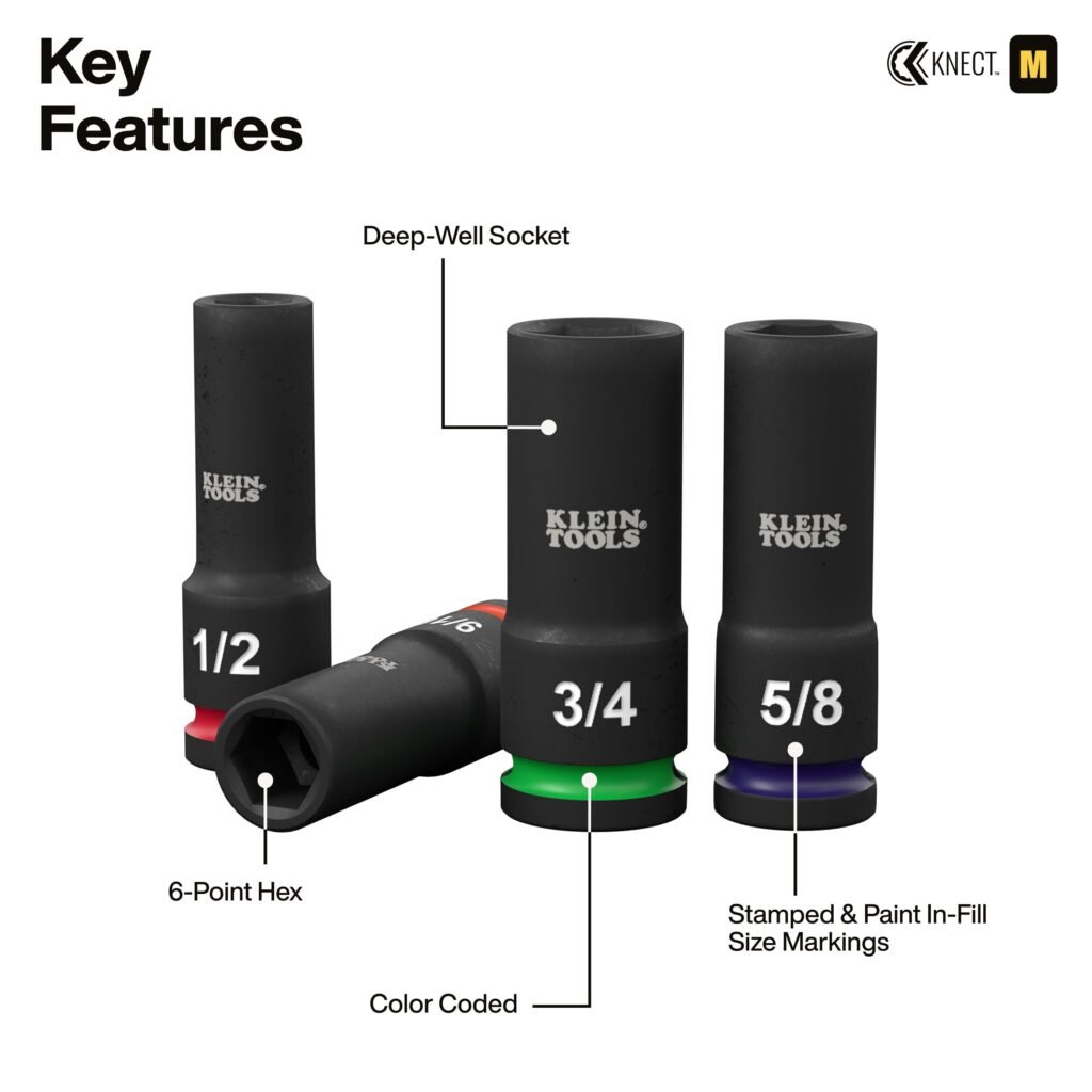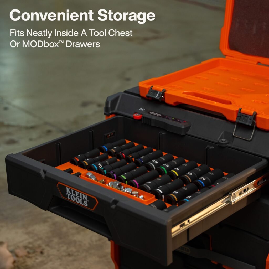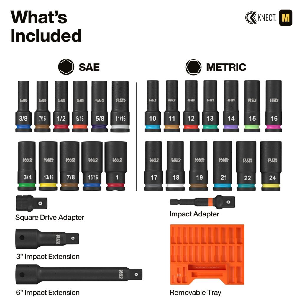 Klein Tools 65123HD KNECT 1/2″ Deep-Well Impact Socket Set, SAE / Metric, 28 Pc.
