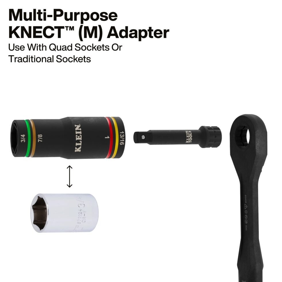 Klein Tools 6513QS KNECT Quad-4 Heavy-Duty Impact Flip Socket, SAE, 2-Piece