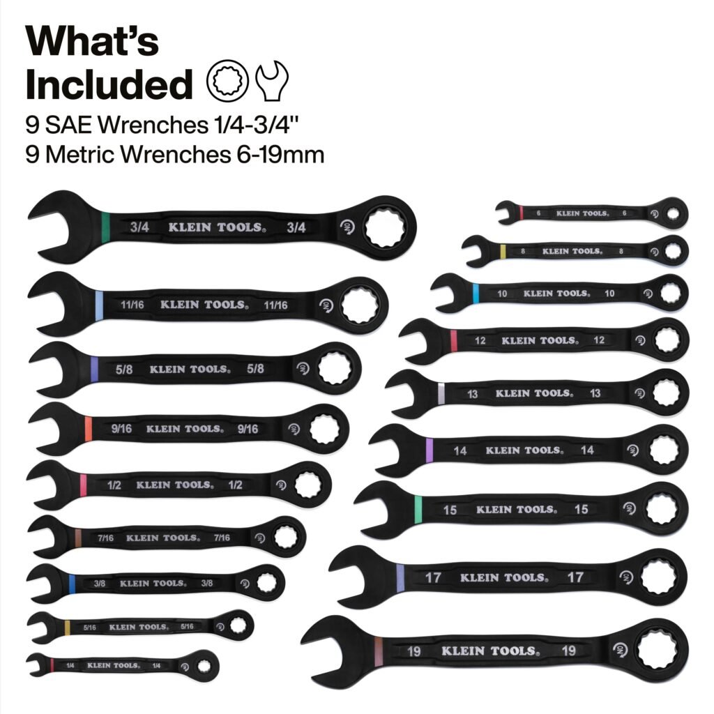 Klein Tools 69418CG Ratcheting Combination Wrench Set, SAE / Metric, 18 Pc.