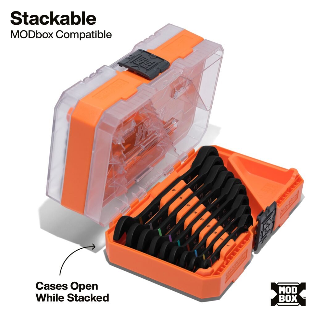 (9) SAE Ratcheting Combination Wrenches, (9) Metric Ratcheting Combination Wrenches, (2) MODboxâ„¢ Compatible Cases