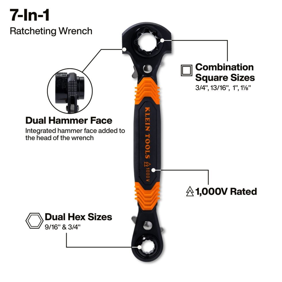 Klein Tools KT175HFINS 7-in-1 Hammer Facing Insulated Lineman Wrench