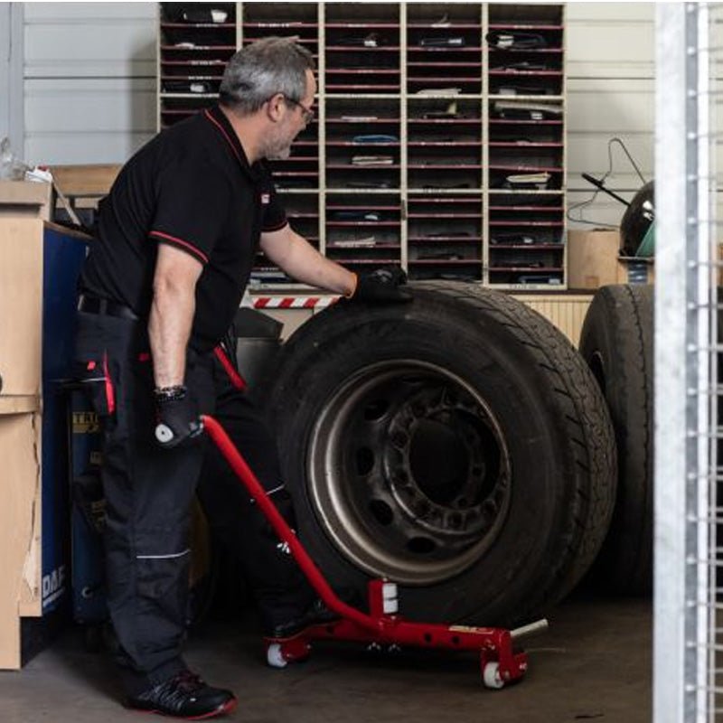 Le lève roue XXL KS TOOLS 160.0250 est conçu pour faciliter le transport et le montage de roues lourdes jusqu’à 250 kg. Il s’adresse particulièrement aux professionnels travaillant sur des chariots élévateurs, poids lourds et bus.