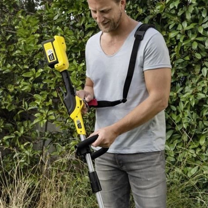 Le coupe-bordures sans fil Karcher LTR 36-33 est un outil puissant et ergonomique, conçu pour offrir une coupe précise grâce à son fil de coupe torsadé. Il dispose d’un réajustement automatique du fil, garantissant une longueur optimale à tout moment. Sa puissance est réglable en continu, permettant de l’adapter à différents types de travaux, tandis que le diamètre de coupe peut être ajusté pour faciliter l’accès aux recoins et passages étroits. L’outil est également équipé d’une deuxième poignée souple et d’une sangle d’épaule pour un confort d’utilisation accru, ainsi qu’un étrier de protection des plantes pour éviter d’endommager les fleurs et les arbres.