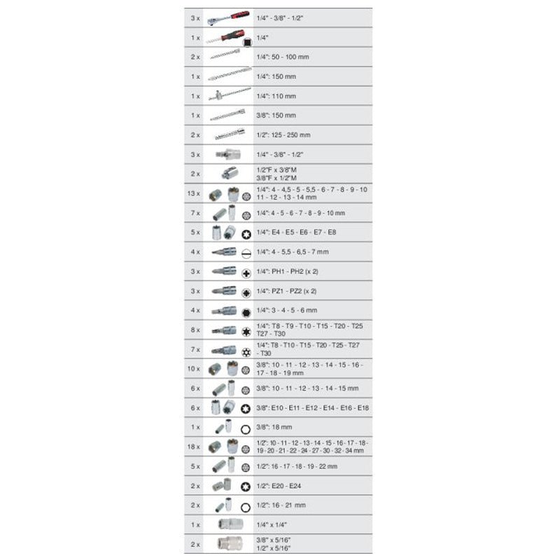 Avantages produits Module de douilles et accessoires 1/4” – 3/8” – 1/2”, 175 pièces – KS TOOLS – 711.1011