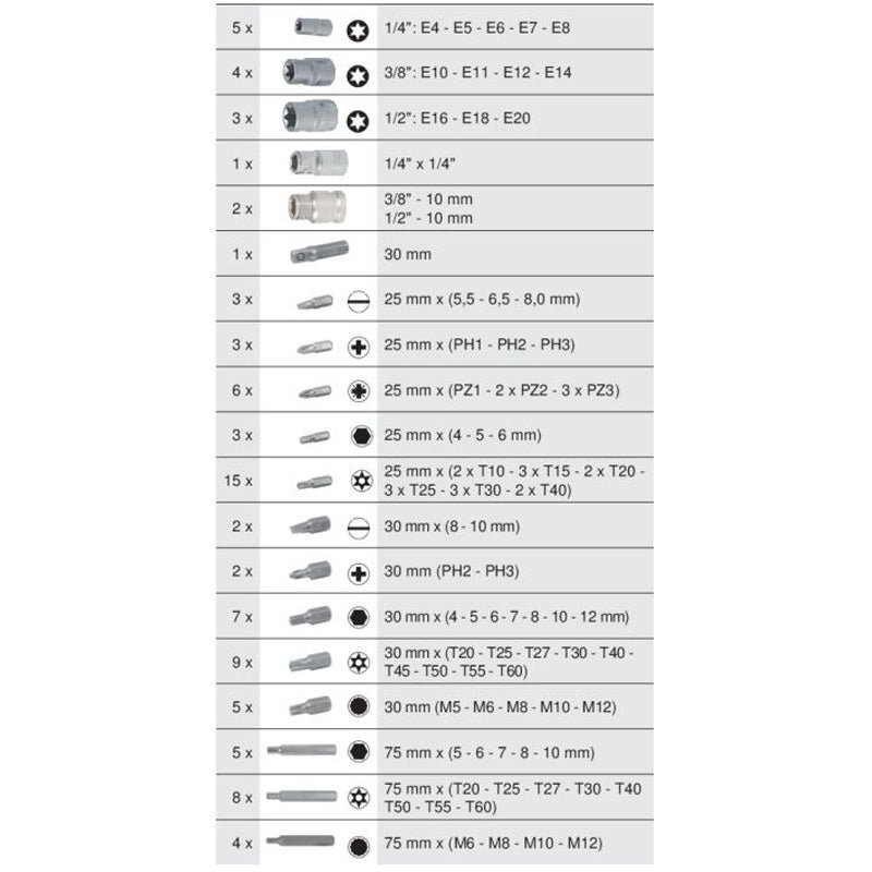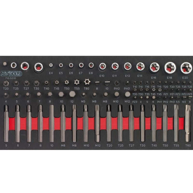 Caractéristiques techniques Module d’embouts de vissage et douilles TORX®, 88 pièces – KS TOOLS – 713.5010