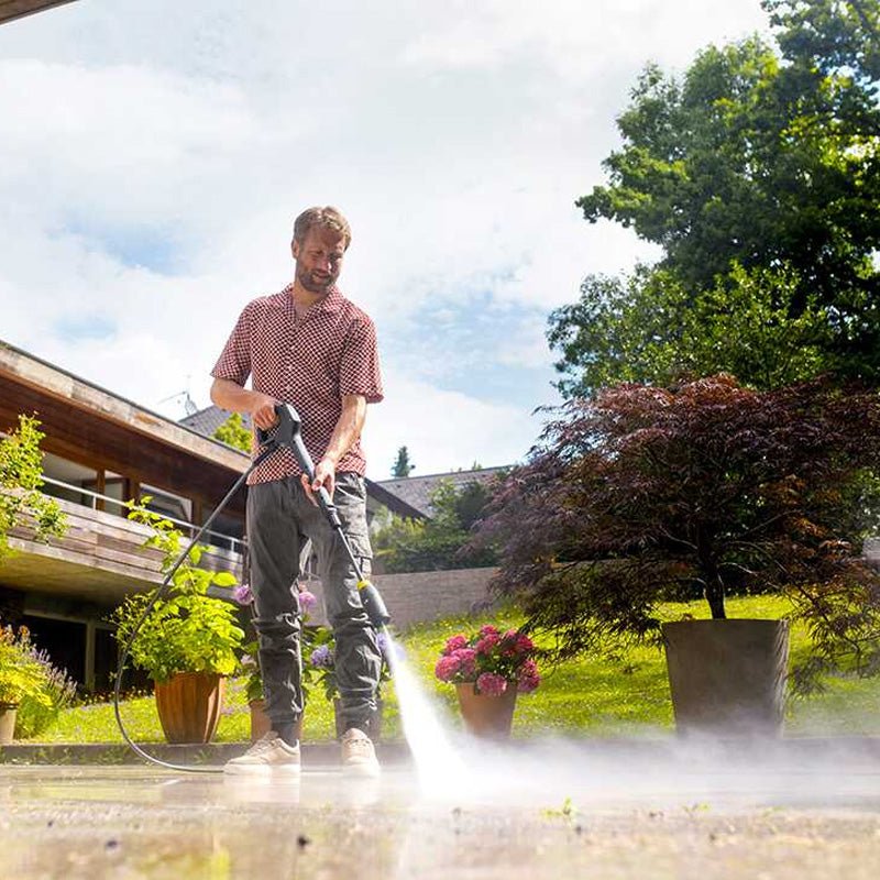 La pression maximale de 130 bars et le débit de 420 L/h permettent d’éliminer rapidement les salissures tenaces sur terrasses, véhicules, meubles de jardin et petites façades. Le système Total Stop économise l’énergie et prolonge la durée de vie de l’appareil, tandis que le kit de distribution de détergent intégré simplifie l’application des produits nettoyants. Grâce à son design pratique, il offre un rangement astucieux des accessoires et du câble pour un appareil toujours prêt à l’emploi.
