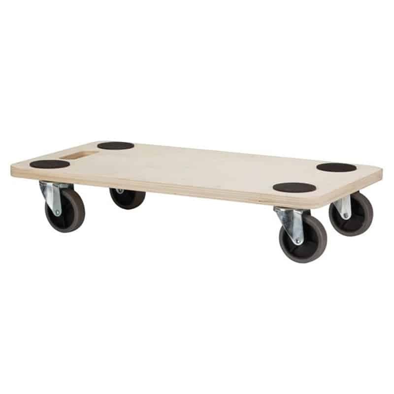 Dimensions : 56 x 30 cm, hauteur 11 cm. Capacité maximale : 150 kg. Plateau en contreplaqué durable. Équipé de roulettes pivotantes pour une grande mobilité. Conception solide et résistante pour un usage régulier. Format compact et polyvalent, adapté au transport de meubles, plantes, colis ou pour l’organisation d’espaces de stockage.