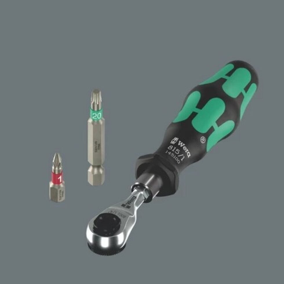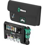 Includes one bit ratchet for 1/4″ bits, one bitholding screwdriver (1/4″), one universal holder for screwdriving machines (50 mm long), 13 bits (1/4″), one adapter for sockets (1/4″ hexagon to 1/4″ square head), 4 sockets (1/4″)