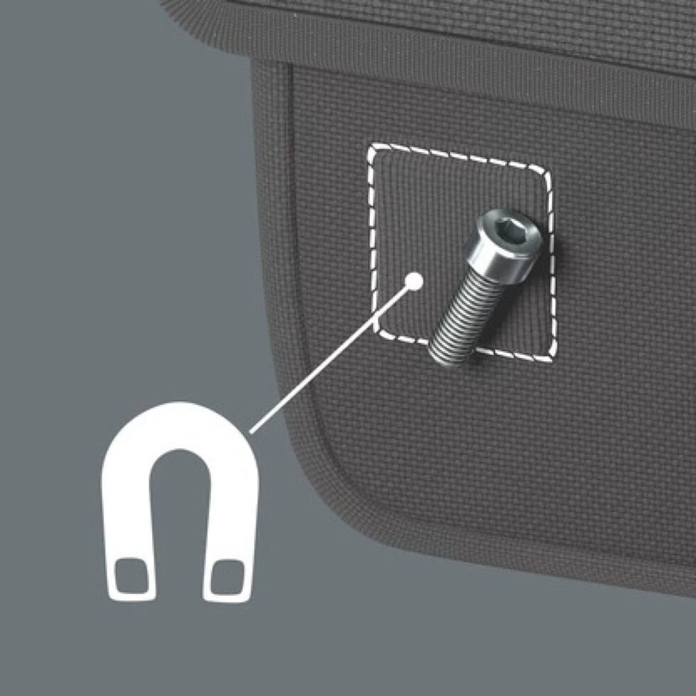 The pouch with a sewn-in magnet on the front offers a place where screws and bits feel comfortable and will not get lost!