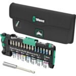 Includes one bit ratchet for 1/4″ bits, one bitholding screwdriver (1/4″), 2 universal holders for screwdriving machines (50 mm and 100 mm long), 28 bits (1/4″), one adapter for sockets (1/4″ hexagon to 1/4″ square head), 7 sockets (1/4″)